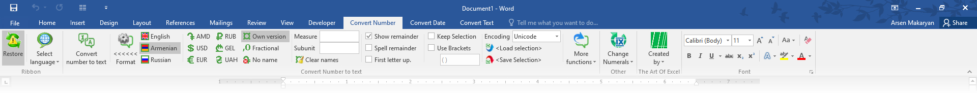 Convert Number – converts numbers and digits to text (English, Armenian and Russian languages),